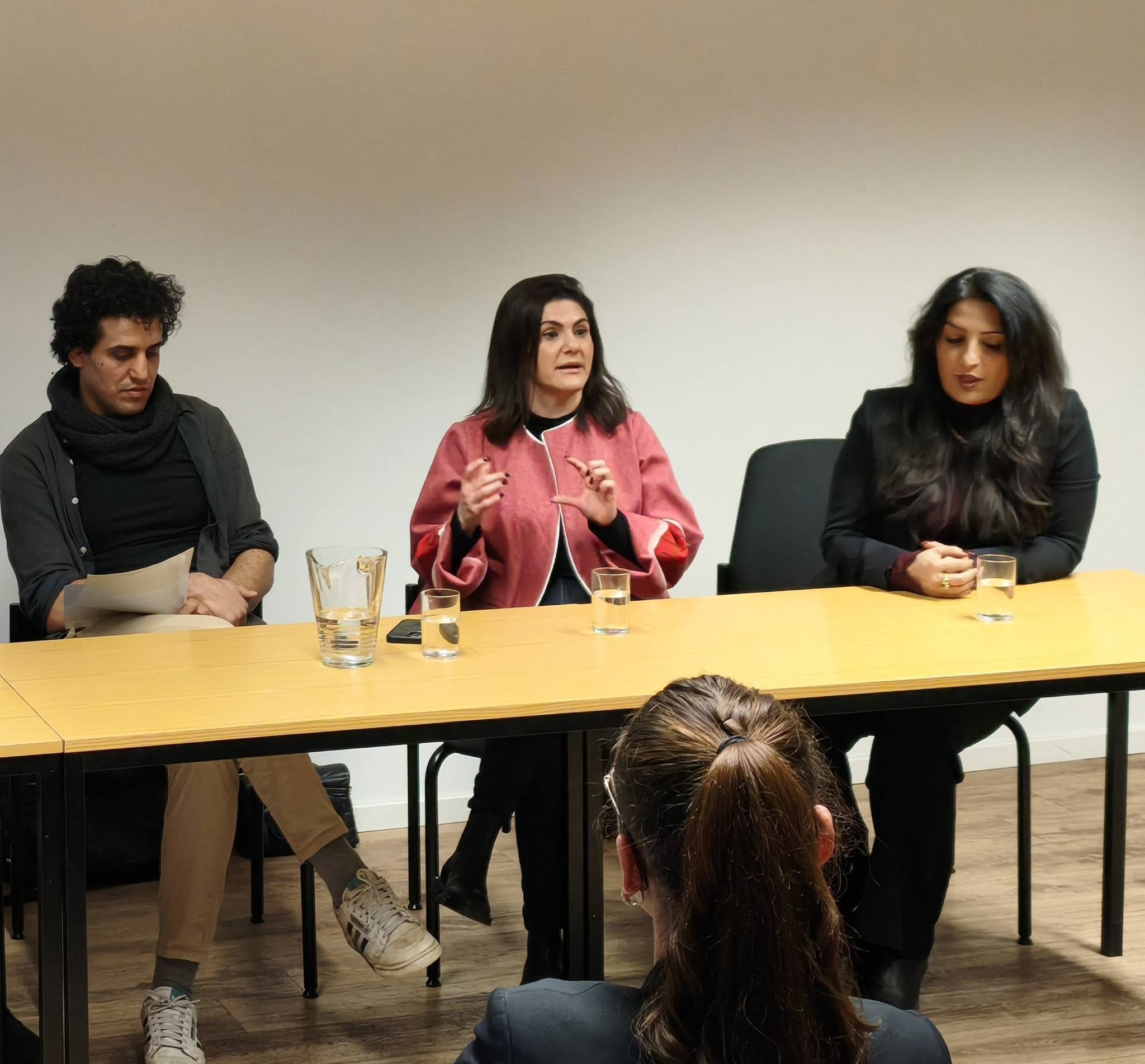 Anschließend diskutierten Mariam Claren, Neda Paiabandi, Sultan Golabi und Voria Ahmadi über aktuelle Entwicklungen, staatliche Repression, die Situation politischer Gefangener sowie mögliche gesellschaftliche und politische Alternativen. Moderiert wurde das Gespräch von Shoan Vaisi, der die verschiedenen Perspektiven miteinander verband und Raum für kritische Nachfragen eröffnete.